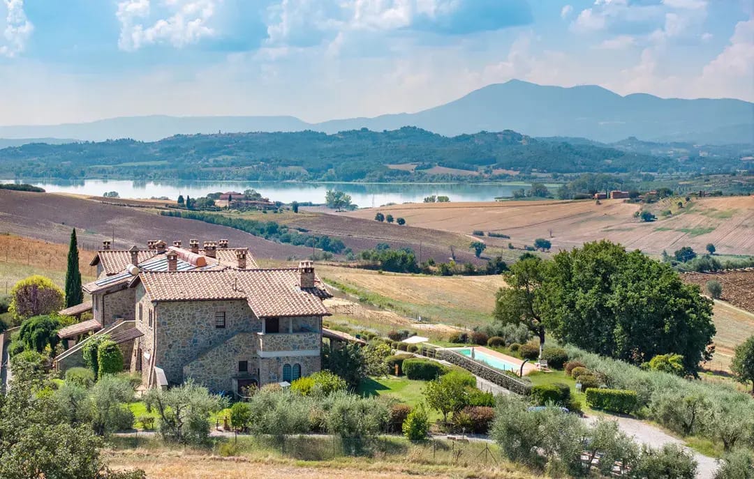 Our Take: Ideally positioned on the border of Umbria and Tuscany, this property offers the best of both regions. The inclusion of a shared pool reduces maintenance headaches, while the private gardens ensure you still have your own patch of earth. The sunset views over Lake Chiusi from the terrace are the main selling point here.